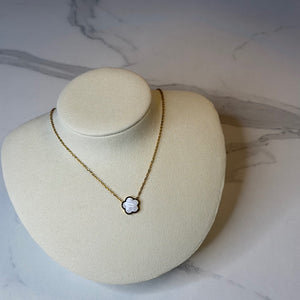 A delicate necklace with a delicate flower pendant simple, feminine, and timeless Stainless steel, 18K gold-plated Nickel-free & water-resistant Allergy-friendly.