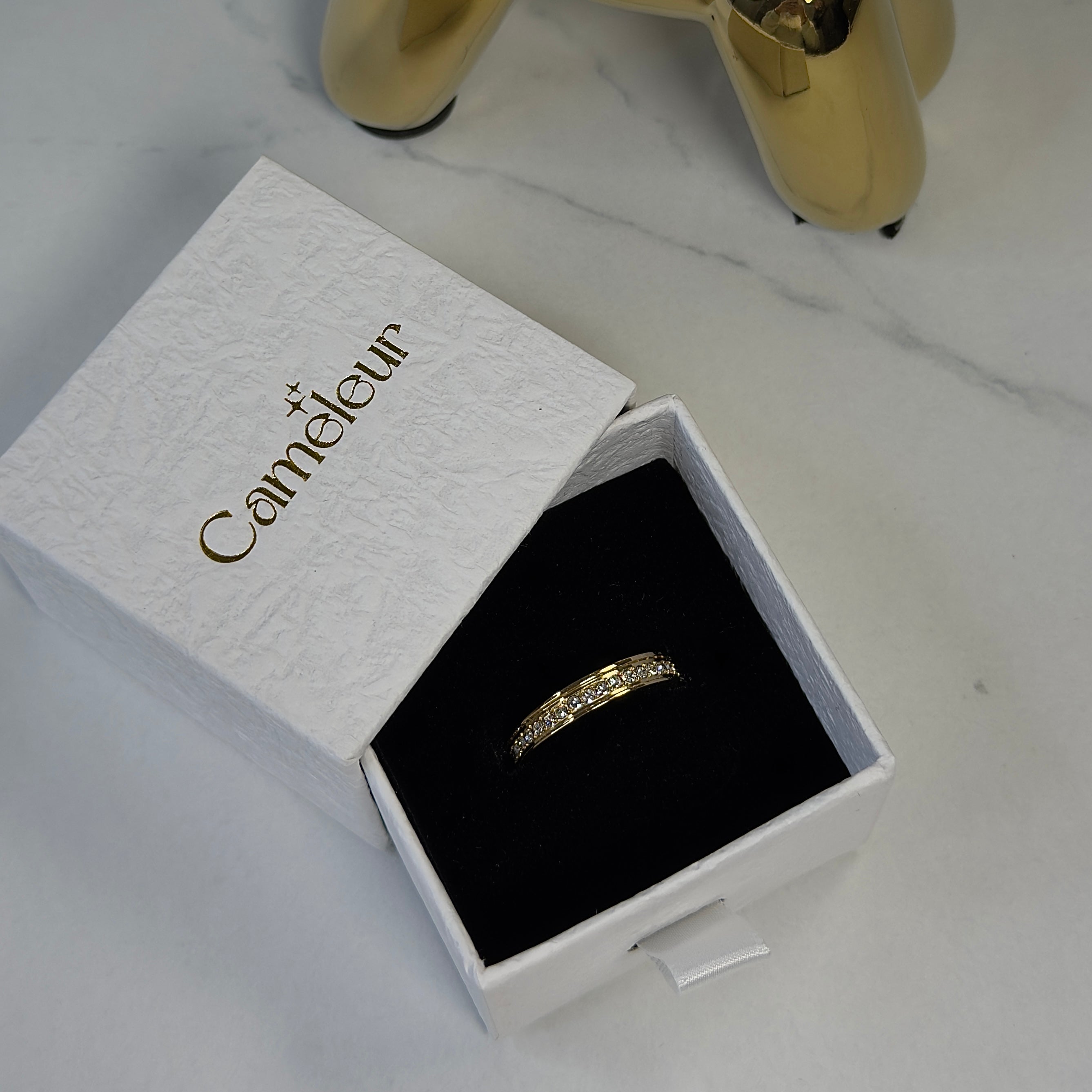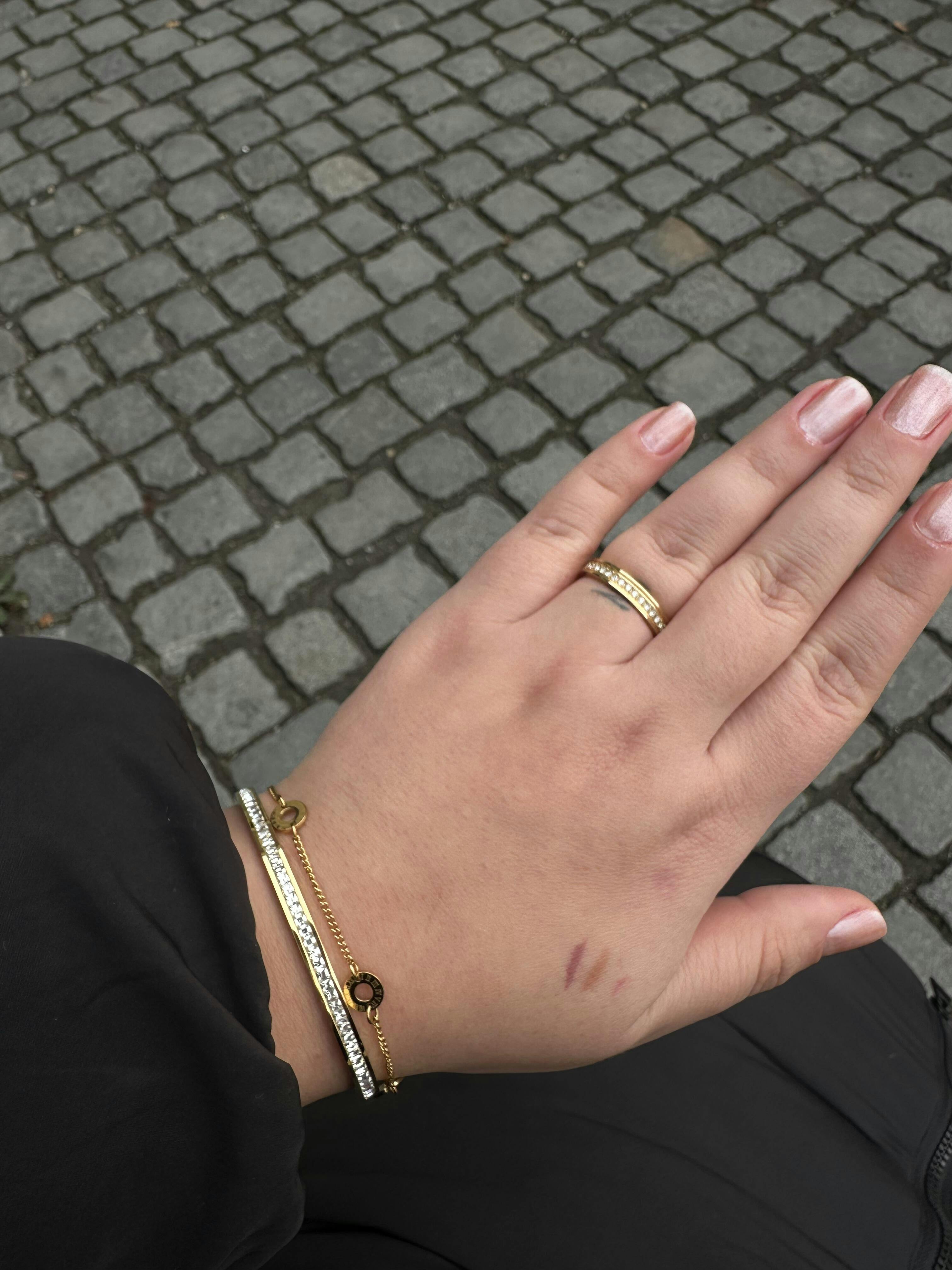 Radiant stainless steel ring with sparkling zirconia. Simple, elegant, and timeless. Stainless steel, 18k gold-plated. Nickel-free and water-resistant. With a sophisticated shine.