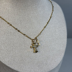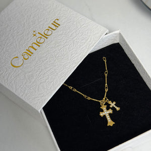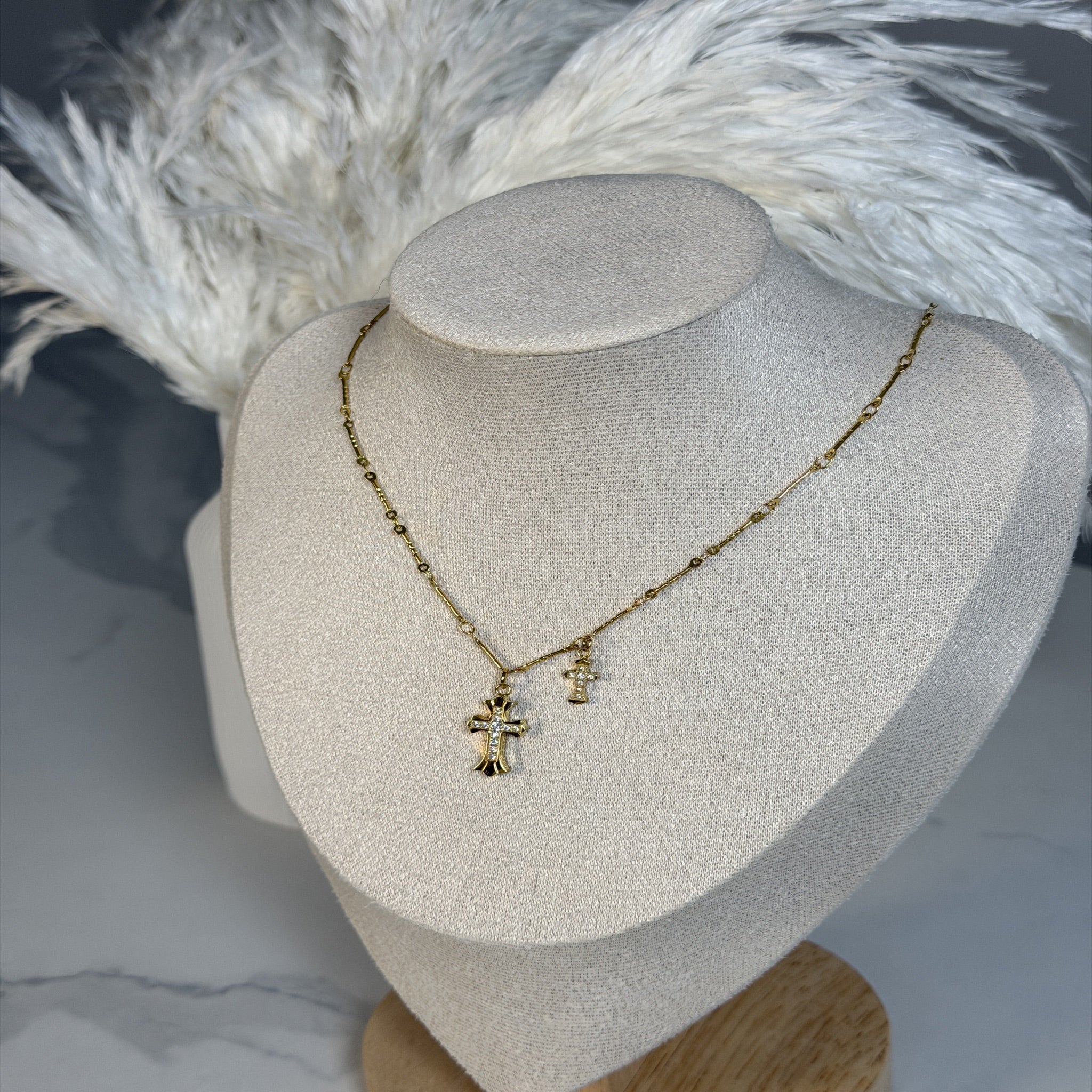 Zeitlose Halskette mit zwei feinen Kreuzanhängern – elegant und zurückhaltend, perfekt für Alltag & besondere Momente.