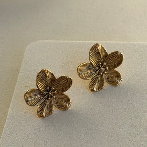 Goldene Blüten mit feinen Strukturen. Feminin, elegant und ein echter Hingucker. Edelstahl, 18K vergoldet. Nickelfrei & wasserfest.