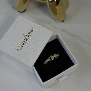 Delicate ornamental details paired with subtle sparkle — a refined piece made to stand out.