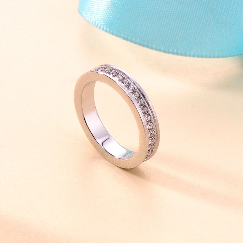 Strahlender Edelstahlring mit funkelnden Zirkonia. Schlicht, elegant und zeitlos. Edelstahl, 18 Karat vergoldet. Nickelfrei und wasserfest. Mit edlem Glanz.