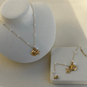 Zarte Perlen und edle Meeresanhänger – ein verspieltes Set, das einen Hauch von Leichtigkeit und sommerlicher Frische verströmt.
